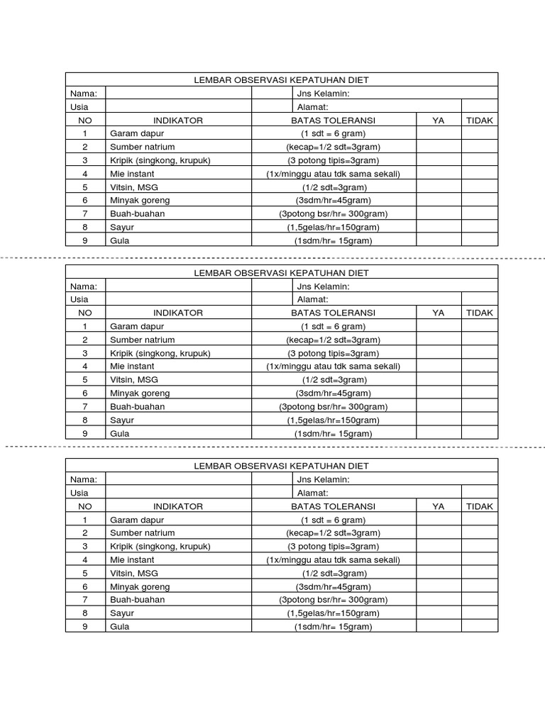 Lembar Observasi Kepatuhan Diet