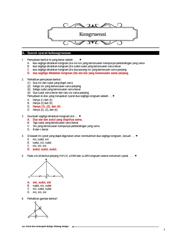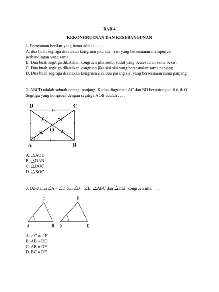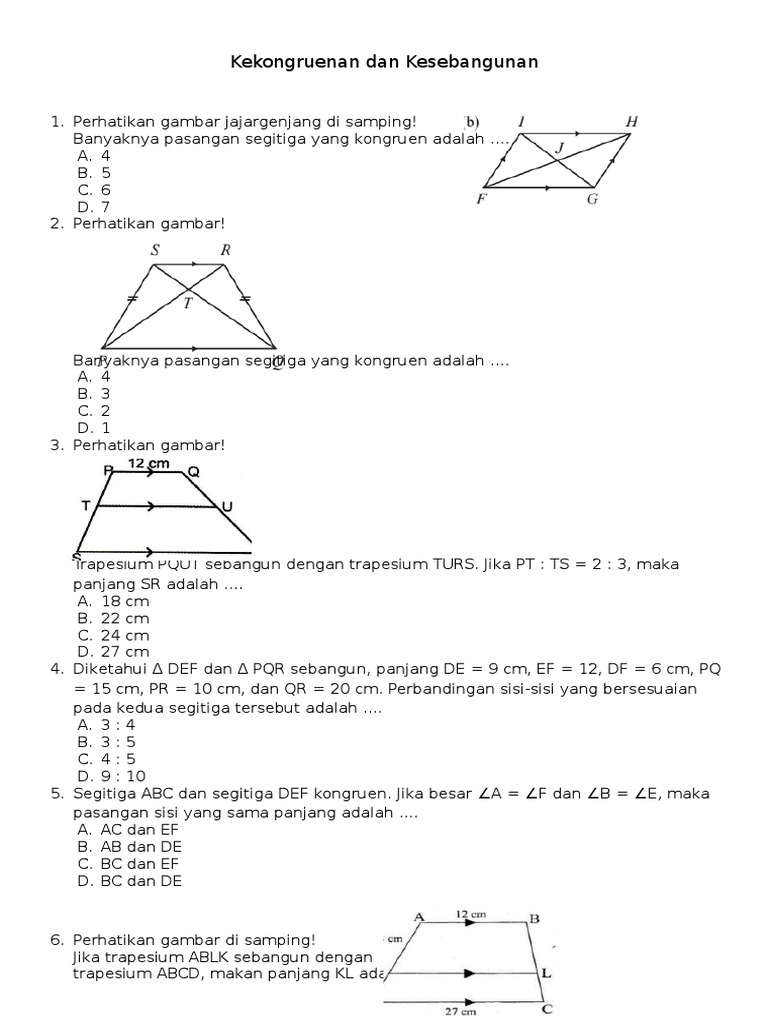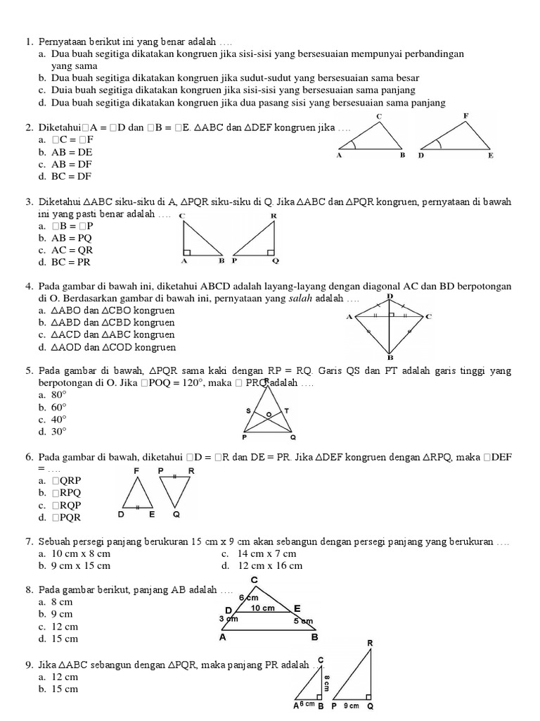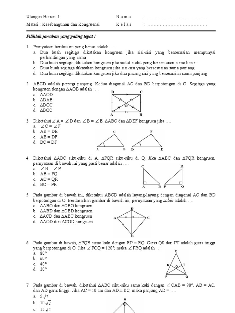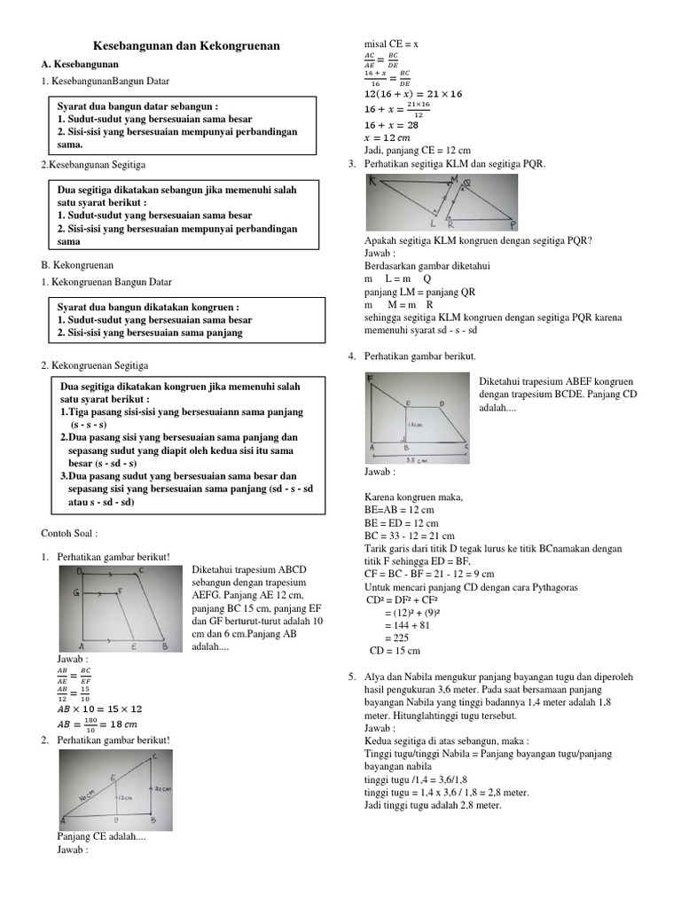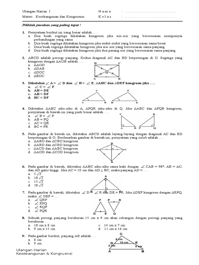 DOC) 1. Latihan Soal Matematika Kesebangunan dan Kekongruenan Kelas 9 SMP | Rinie Nst - Academia.edu