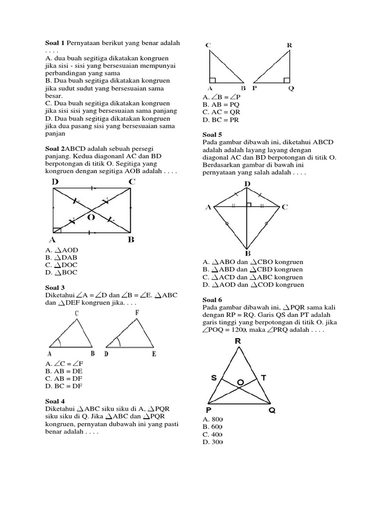Soal-soal Kesebangunan dan kongruen pada segitiga