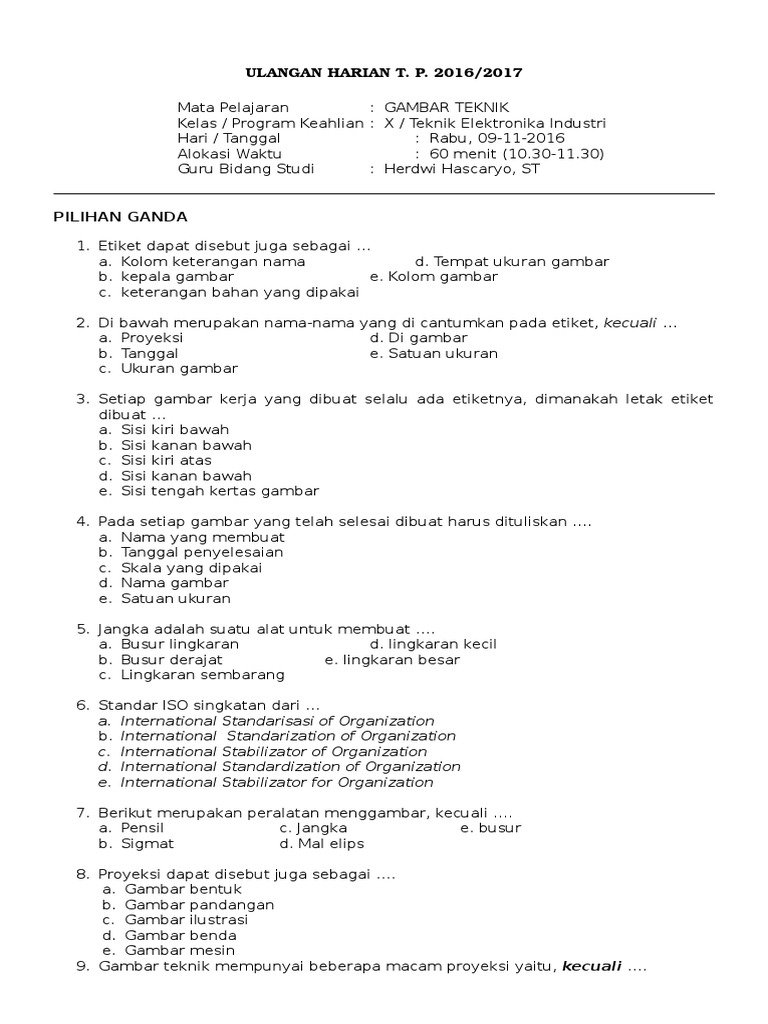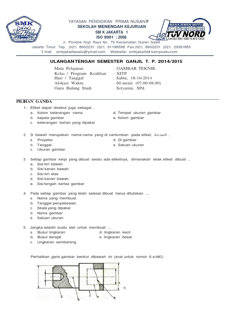 Soal Gambar Teknik Smk Kelas X - Guru Ilmu Sosial