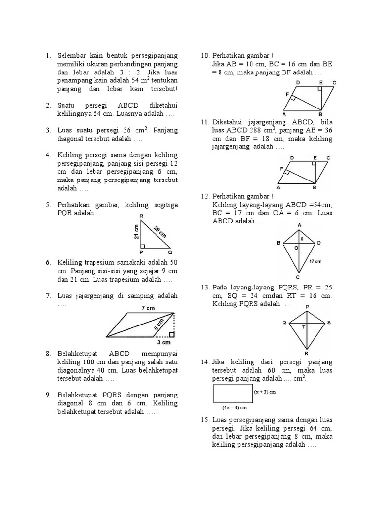 Soal Bangun Datar Jajar Genjang plus Kunci Jawaban ~ Juragan Les