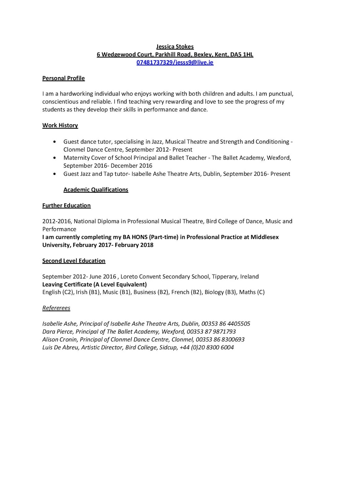 Jessica Stokes BAPP Blog: Task 1A: CV and Personal Profile Continuation