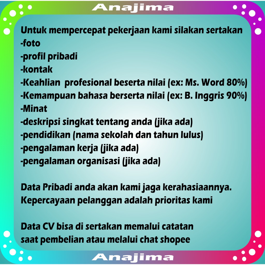 Buat CV / Biodata / Data Diri / Desain Custom / Profil | Shopee Indonesia