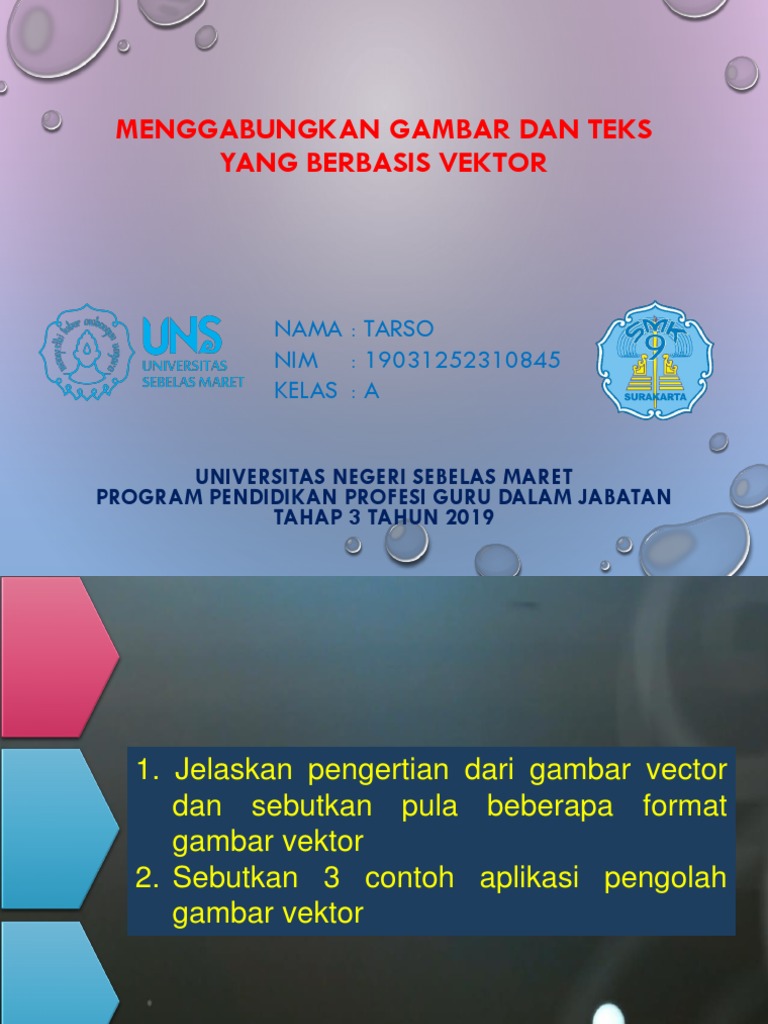 Menggabungkan Gambar Dan Teks Yang Berbasis Vektor: Nama: Tarso NIM: 19031252310845 Kelas: A