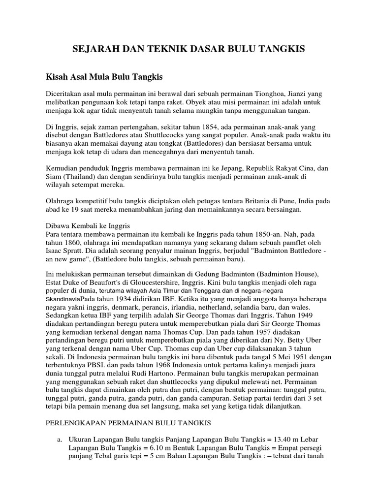 DOC) Sejarah, Peraturan, dan Teknik dasar dalam Bulu Tangkis | Hermansyah Sihombing - Academia.edu