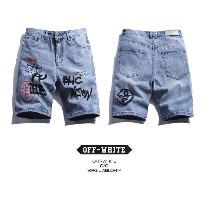 Off White Celana Pendek Jeans Denim Motif Print Sketsa Graffiti Ow Untuk Pria | Shopee Indonesia