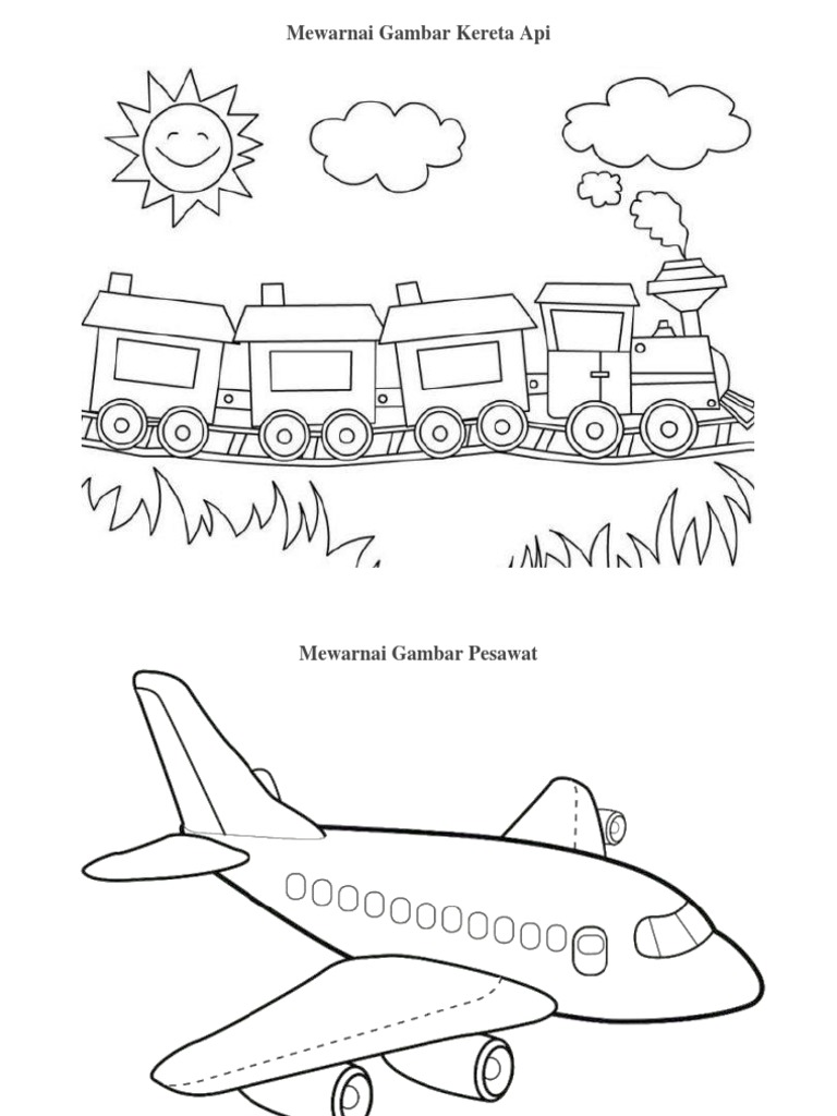 Mewarnai Kereta Api - Contoh Gambar Mewarnai