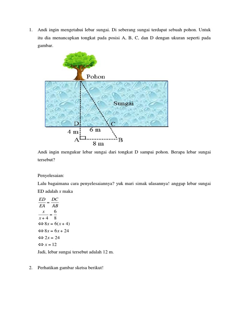 sebuah sketsa seorang insinyur yang akan mengukur lebar sungai (AB) seperti pada gambar, bantulah - Brainly.co.id