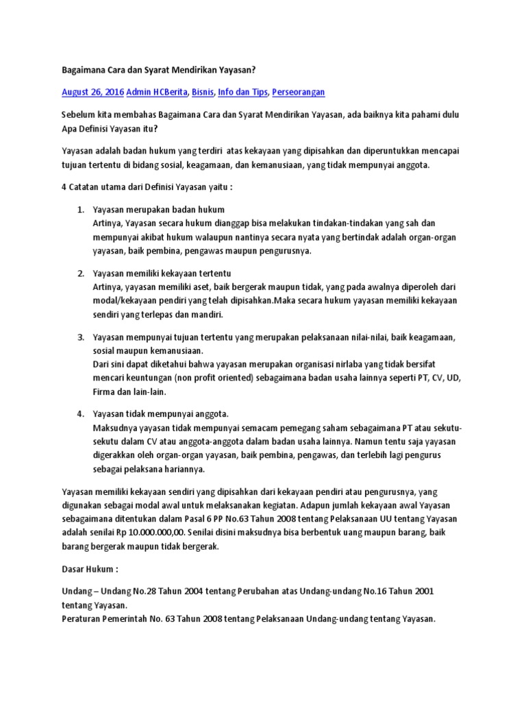 Bagaimana Cara Dan Syarat Mendirikan Yayasan