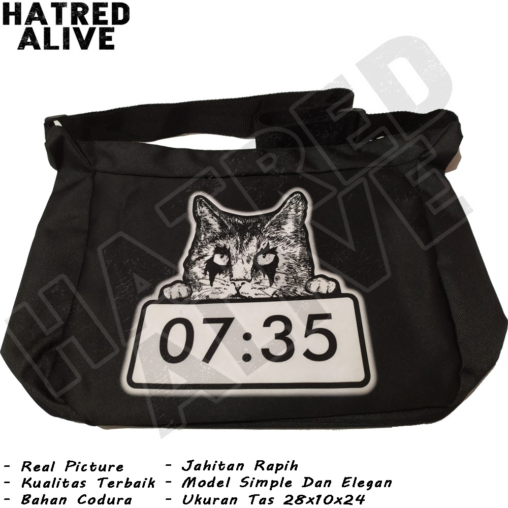 Tas selempang pria wanita gambar jam kucing slingbag sekolah Waistbag distro murah berkualitas | Shopee Indonesia
