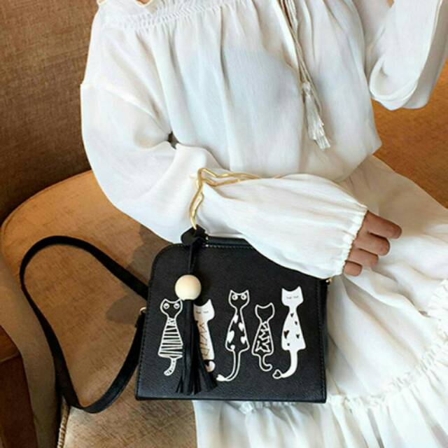 Jual TAS SELEMPANG WANITA GAMBAR KUCING IMPORT KULIT HITAM PUTIH WITHY - Jakarta Barat - Misca Store 2338 | Tokopedia