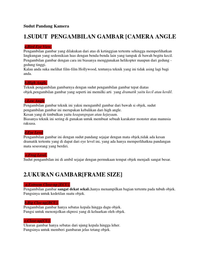 DOC) Jenis-jenis Angle Kamera | Ardi Menthol - Academia.edu