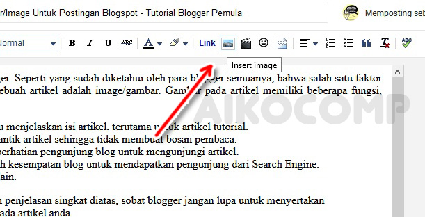 4 Langkah Cara Upload Gambar/Image Untuk Postingan Blogspot - Tutorial Blogger Pemula | Aiko Computer