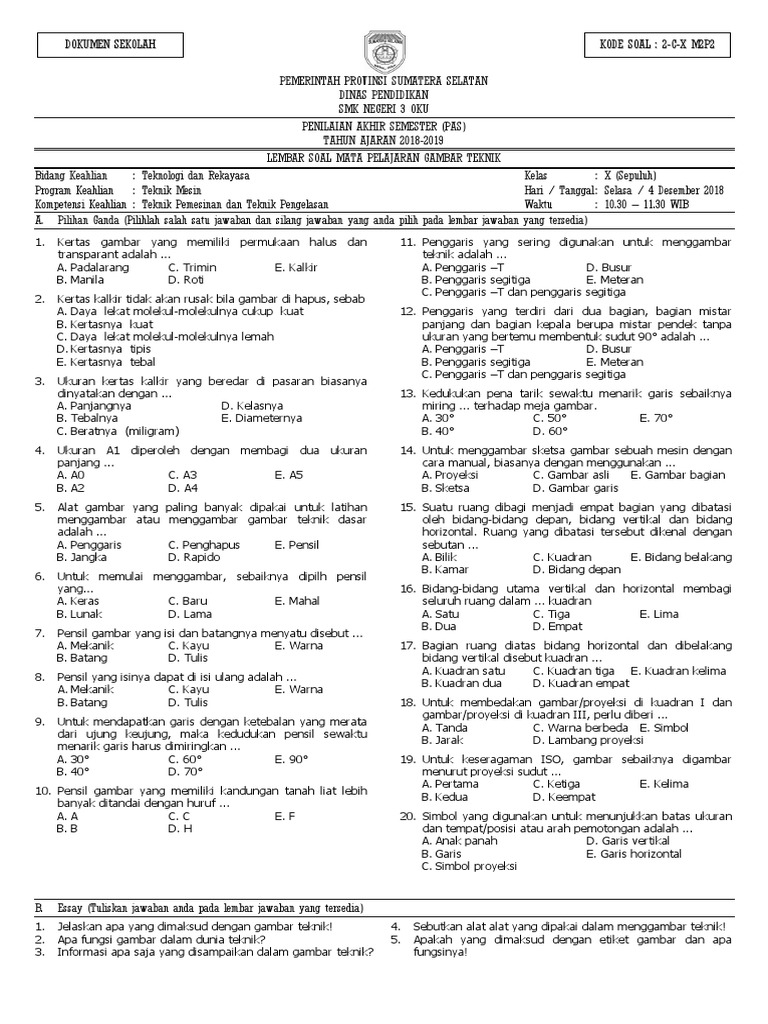Contoh Soal Dan Jawabannya Tentang Gambar Teknik