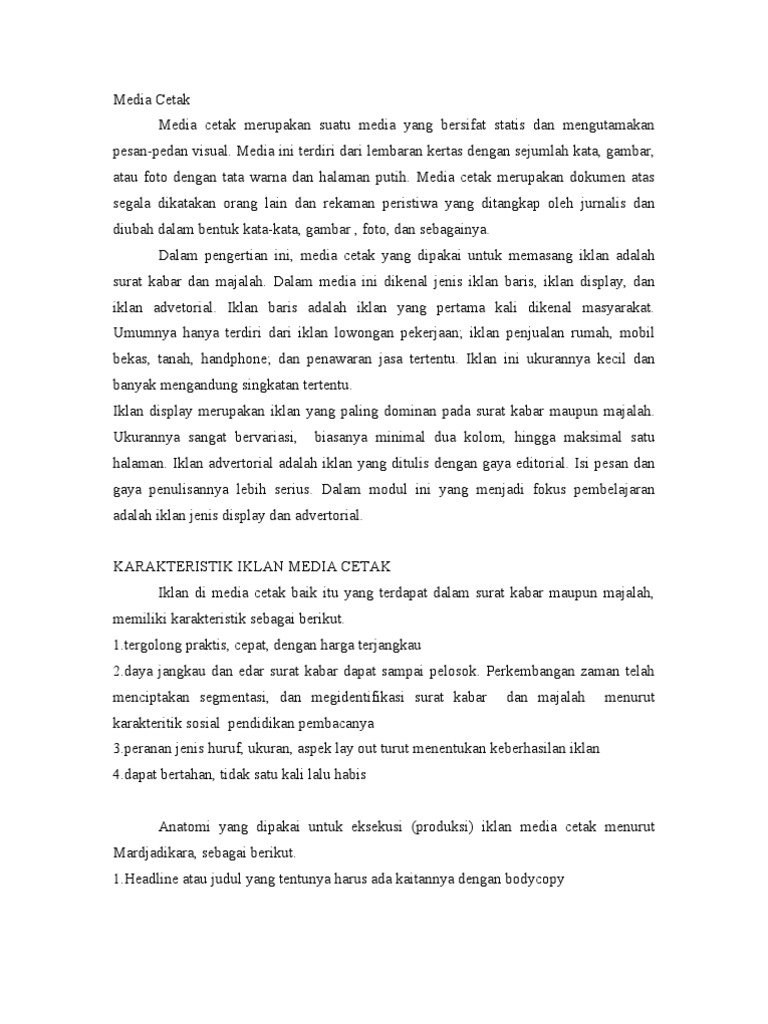 Karakteristik Iklan Media Cetak