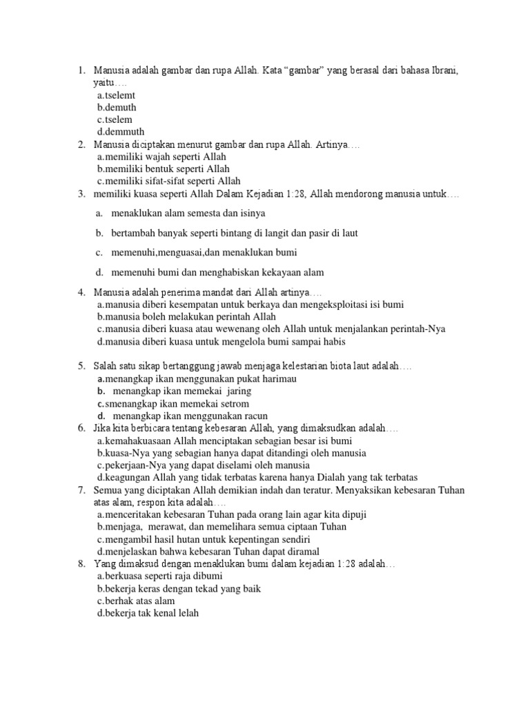 tuliskan 5 arti manusià diciptakan menurut gambar dan rupa Allah - Brainly.co.id