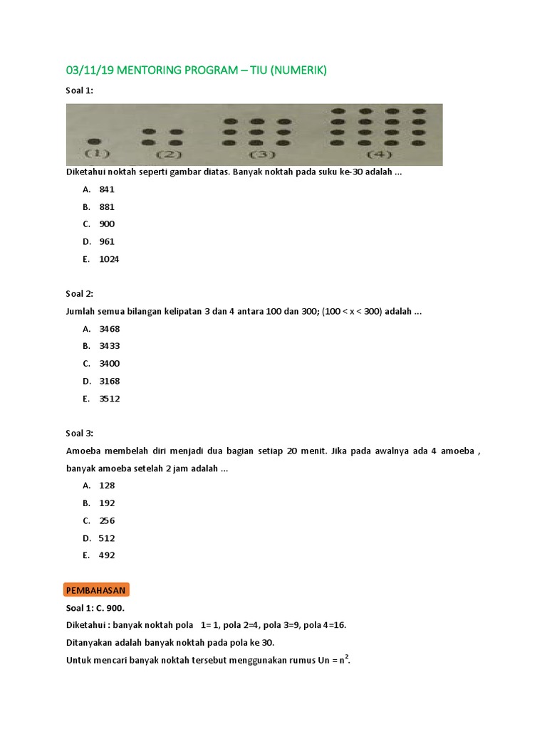 Contoh soal pola bilangan, barisan bilangan dan pembahasannya – Soalfismat.com