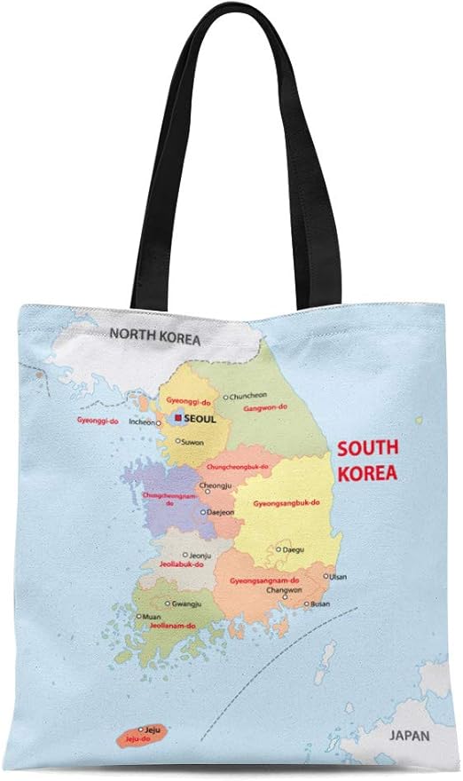 Amazon.com: Semtomn Cotton Canvas Tote Bag Blue Korean South Korea Administrative Map North City Seoul Reusable Shoulder Grocery Shopping Bags Handbag Printed: Kitchen & Dining
