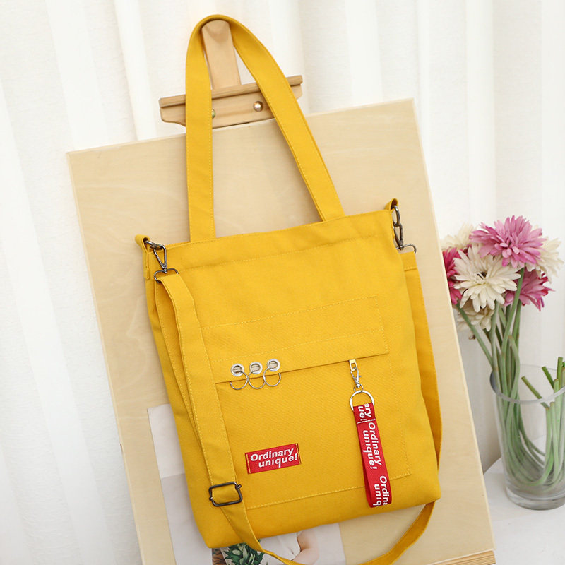 Net red Korean version of leisure canvas bag iron ring hanging with a hundred one-shoulder oblique cross-girl bag tote students tonic cloth bag.
