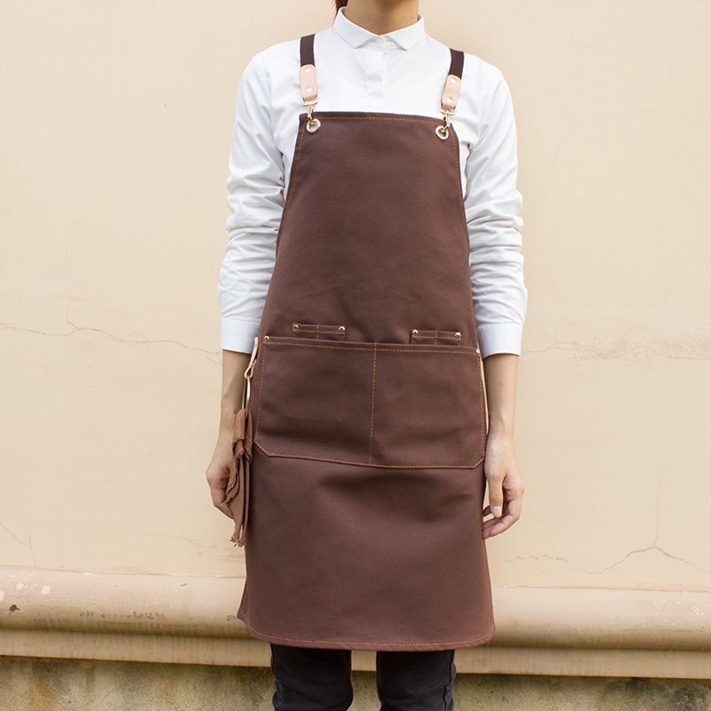 Super Texture Leather Cotton Washed Canvas Apron Coffee Bar Custom | Shopee Singapore