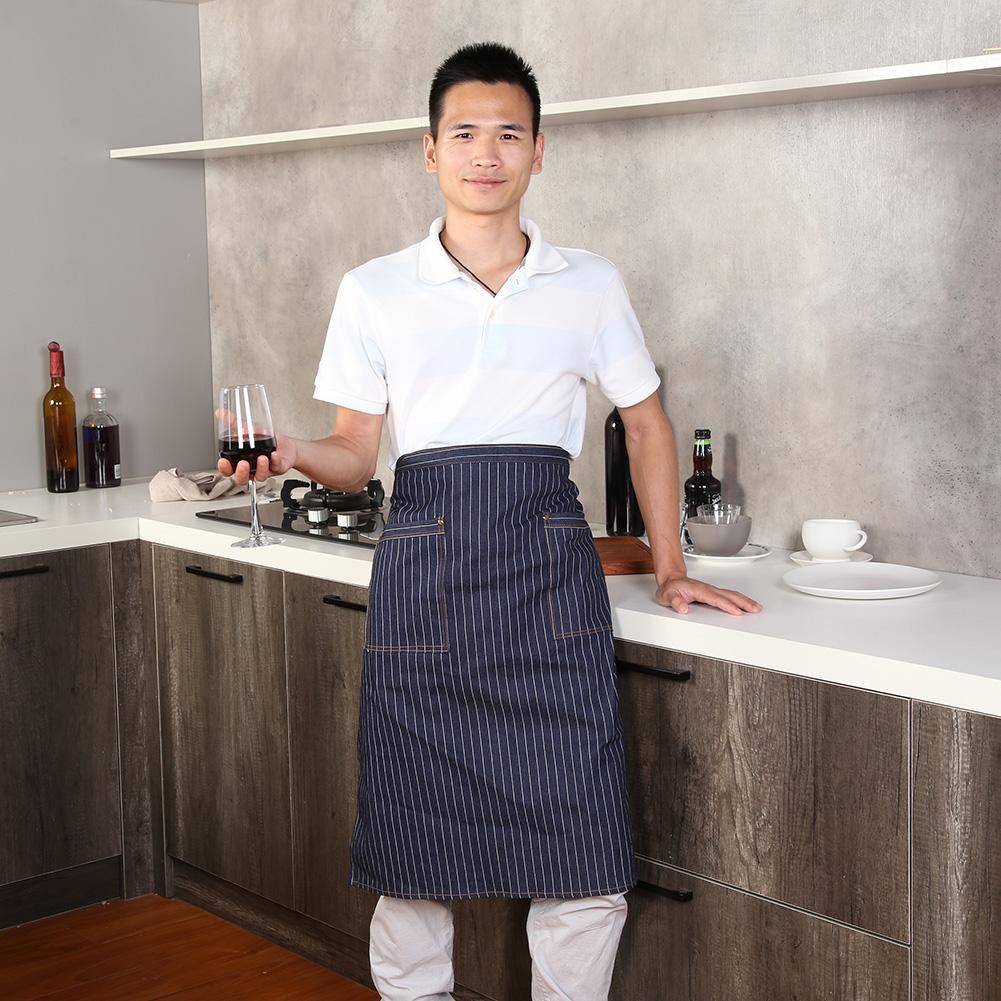 UNISEX STRIPED CANVAS Chef Long Apron Bistro Bar Waiters Half Waist Apron - $10.23 | PicClick