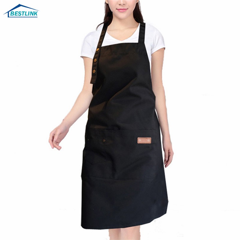 New Canvas Pocket Hanging Neck Unisex Kitchen Cooking Apron Barbecue Cafe Baking Apron Beautician Hairdressers Salon Work Apron|Aprons| - AliExpress