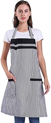 ALIPOBO Cooking Apron for Women, Cotton Canvas Women’s Aprons with 2 Pockets, Adjustable Neck Strap and Long Ties, Durable Chef Bib for Baking, Gardening, Black/White Stripe: Amazon.sg: Home
