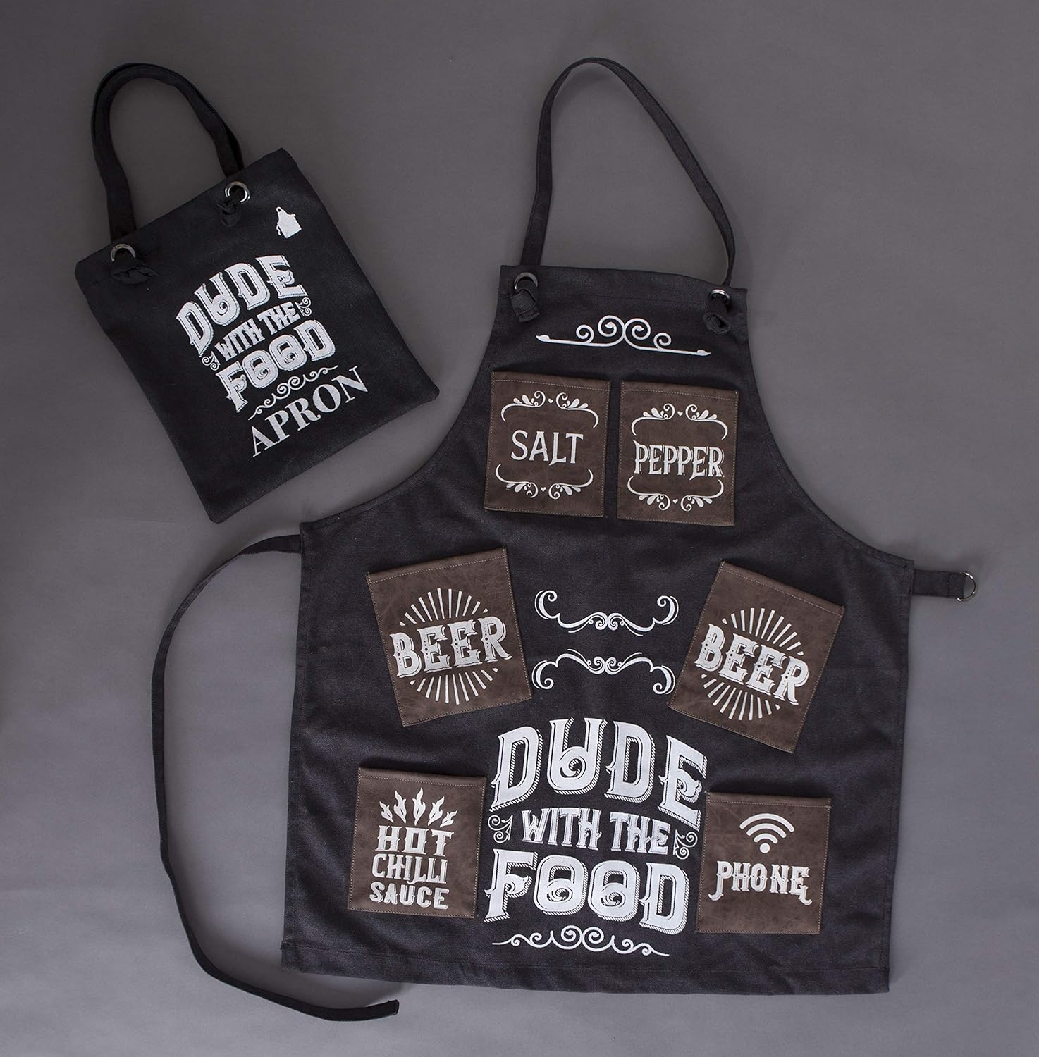 Amazon.com: Boxer Gifts Dude with Food’ Novelty Mans BBQ Cooking Apron | Heavy Duty Canvas with Strong Pockets | Gift for Him On Birthday, Christmas Or Father’s Day, Black: Home & Kitchen