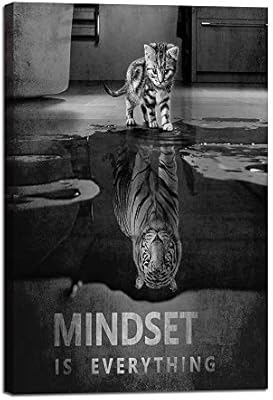 Inspiration Wall Art Posters Small Cat Pictures Big Tiger Canvas Painting Mindset is Everything Print Poster Artwork Wooden Home Decor for Living Room Bedroom Office Framed Ready to Hang (24Wx36H): Amazon.sg
