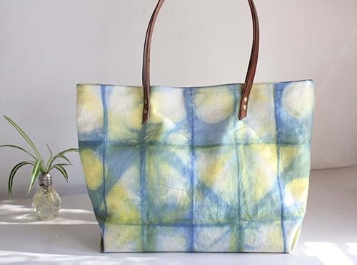 Amazon.com: Shibori dye totebag - Tie-dyed canvas tote with leather straps - Blue and yellow casual bag: Handmade