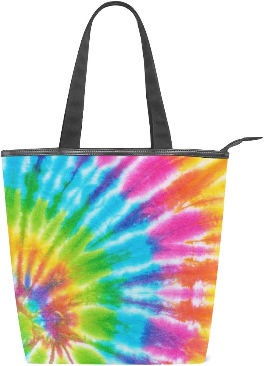 TropicalLife Tie Dye Rainbow Women Canvas Tote Shoulder Bag Handbag with Zipper for Shopping Travel Beach: Handbags: Amazon.com