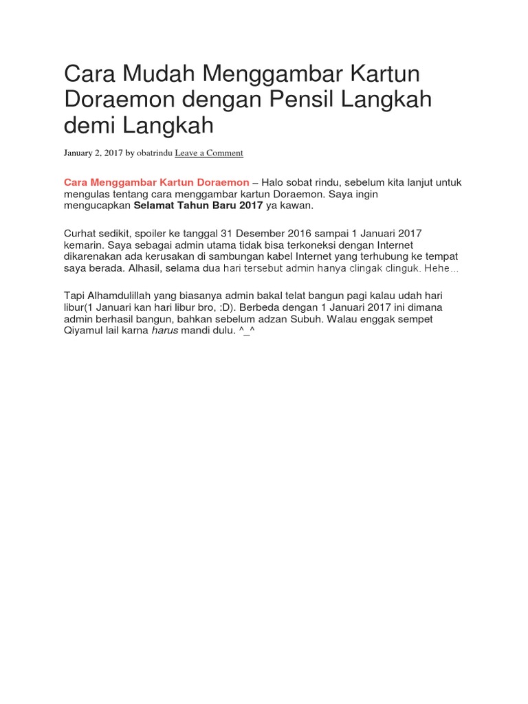 Cara Mudah Menggambar Kartun Doraemon dengan Pensil Langkah demi Langkah - Obatrindu.com