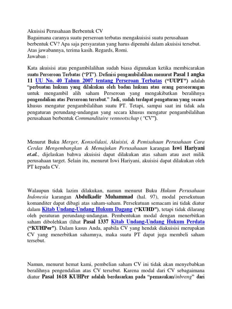 DOC) HUKUM PERUSAHAAN - PROSES DAN SYARAT CV (PERSEKUTUAN KOMANDITER) DAN FIRMA | Deniz Arshavin - Academia.edu