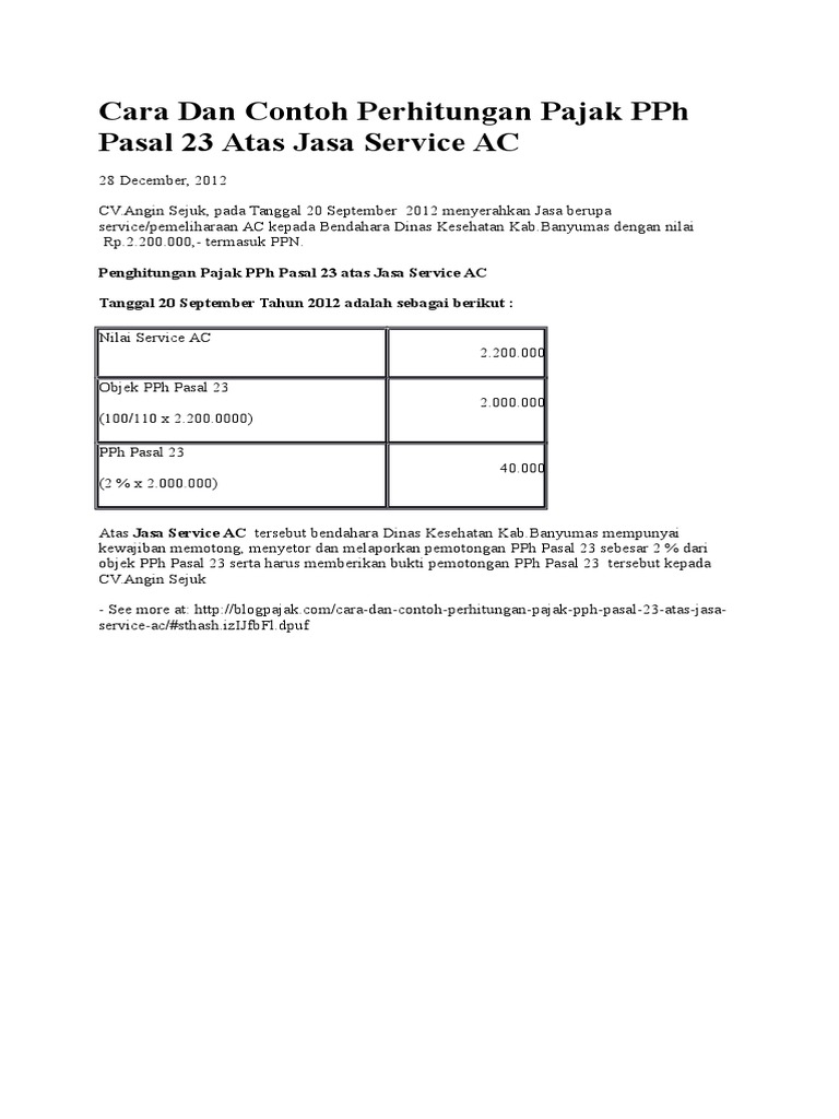 DOC) Cara Dan Contoh Perhitungan Pajak PPh Pasal 23 Atas Jasa Service AC | Suryo Prihastomo - Academia.edu