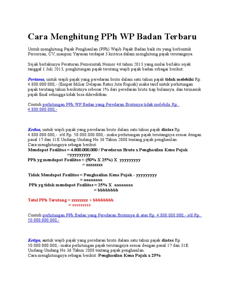 Cara Menghitung PPh WP Badan Terbaru