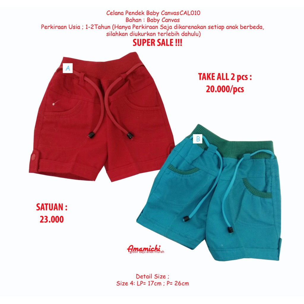 DISKON! 2PCS Celana Pendek Anak Baby Canvas SIZE 4 SAJA/1 TAHUN | Shopee Indonesia