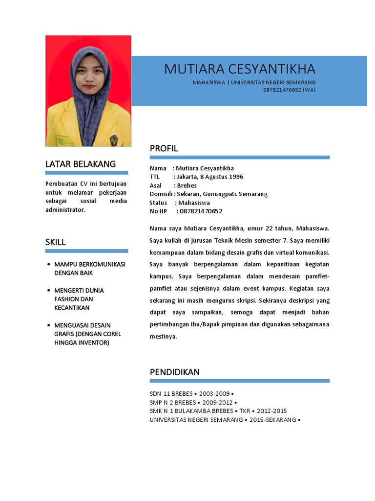 Kumpulan soal Pelajaran 4: Contoh Cv Mahasiswa Yang Masih Kuliah
