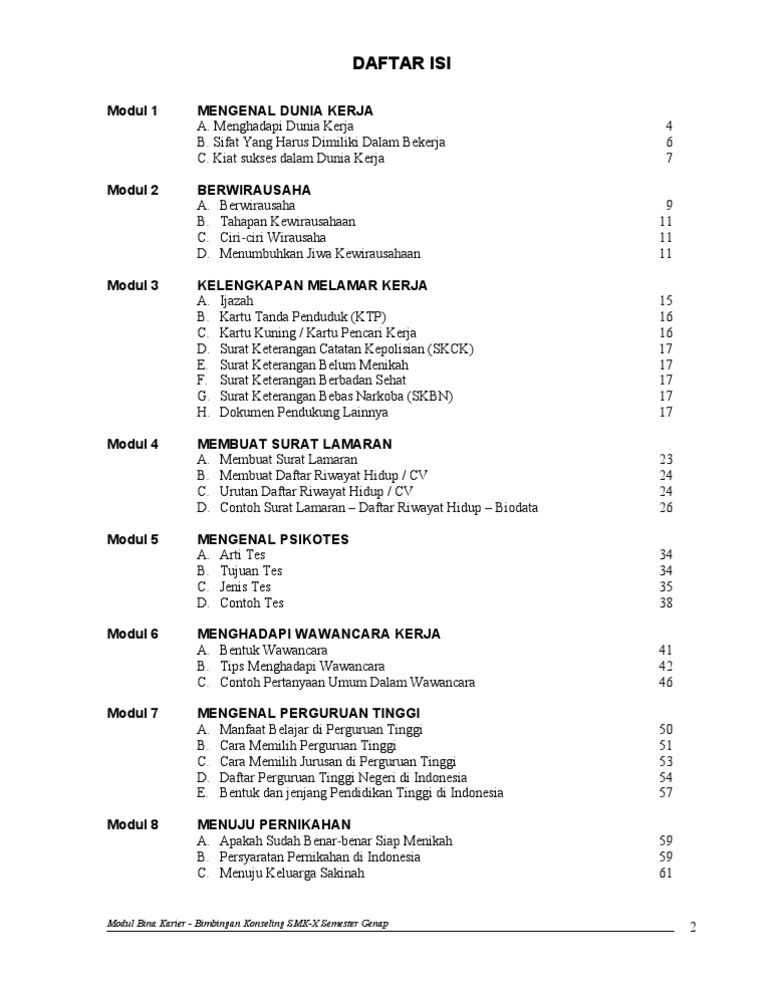 Daftar Isi: Modul 1 Mengenal Dunia Kerja