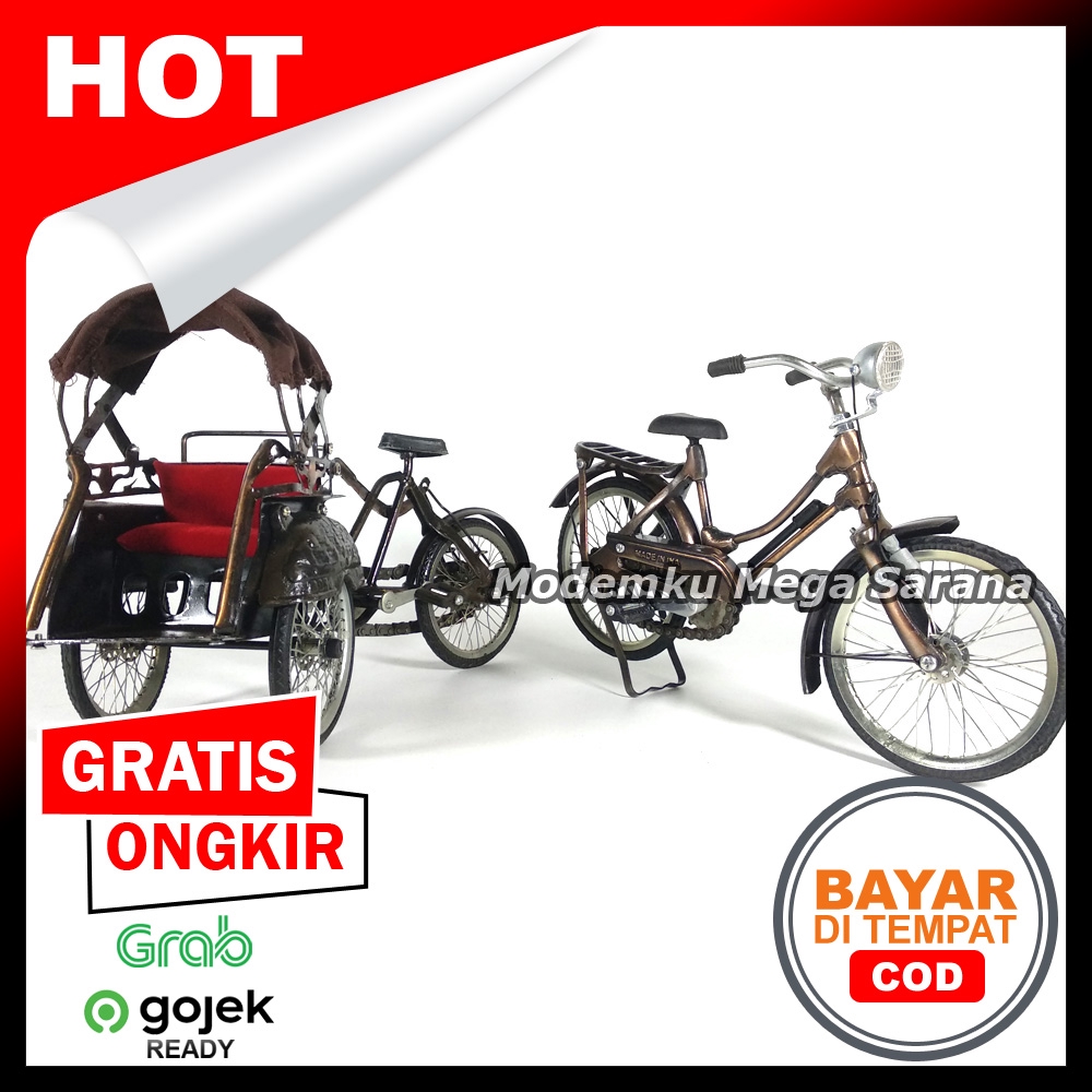 Paket Isi 2 - Miniatur Becak Besi & Miniatur Sepeda Onthel Perempuan | Shopee Indonesia