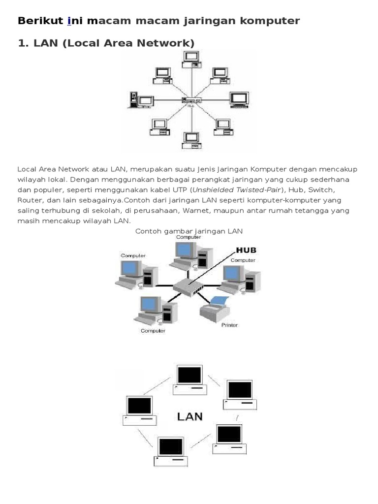 Berikut Ini Macam Macam Jaringan Komputer
