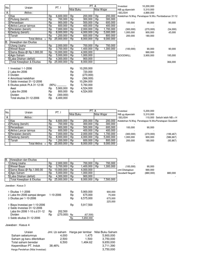 Contoh Soal Laporan Keuangan Konsolidasi Metode Equity - Kumpulan Contoh Laporan