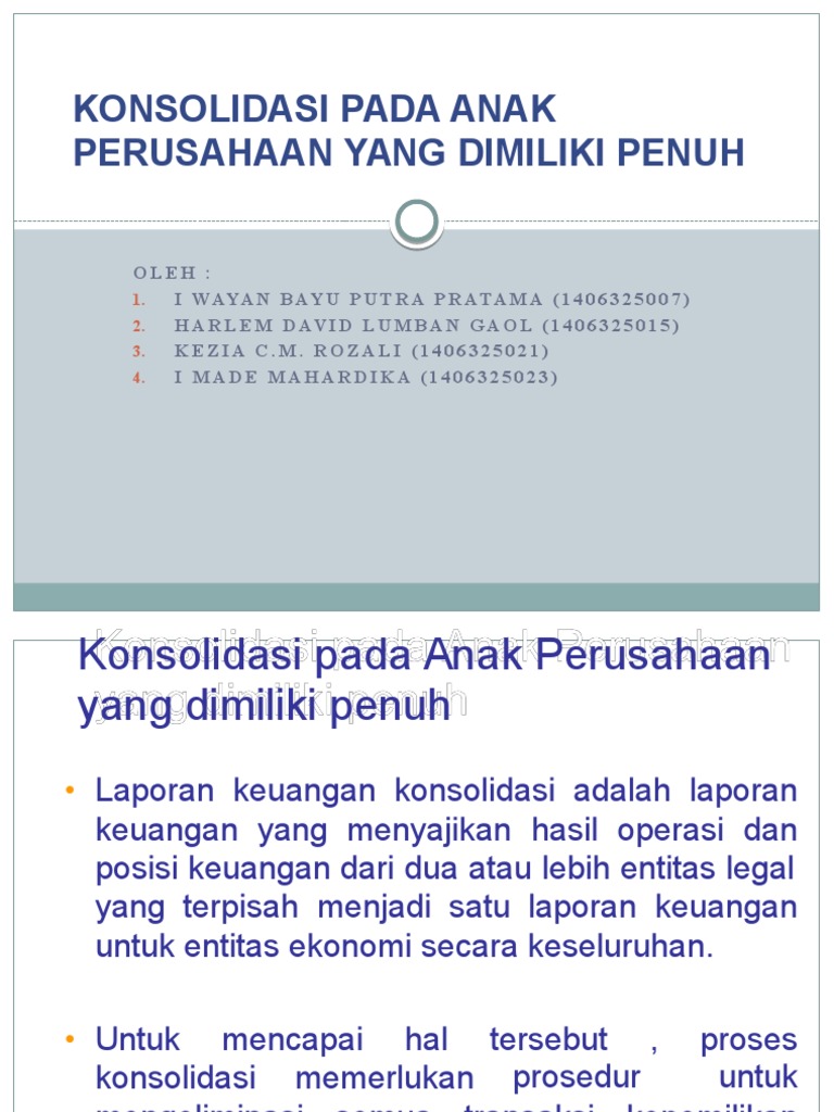 Konsolidasi Pada Anak Perusahaan Yang Dimiliki Penuh