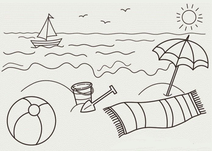 Contoh Mewarnai Pantai - Gambar Mewarnai Gratis