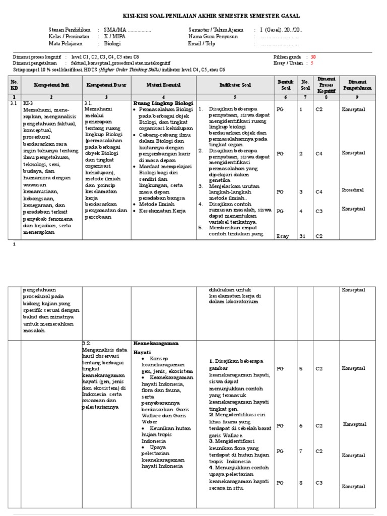 Kisi-kisi Pas Biologi Kls x - Programpendidikan.com