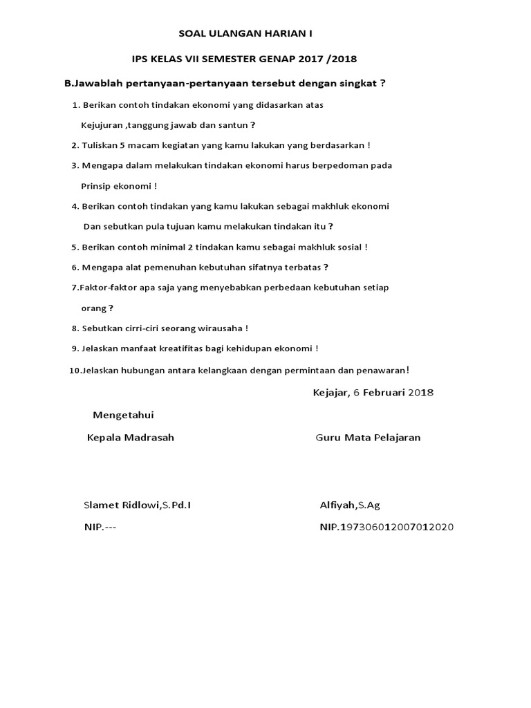 Soal Ulangan Harian i Ips