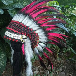 Jual topi bulu ayam indian style merah /putih - Kab. Sleman - widia creatif | Tokopedia