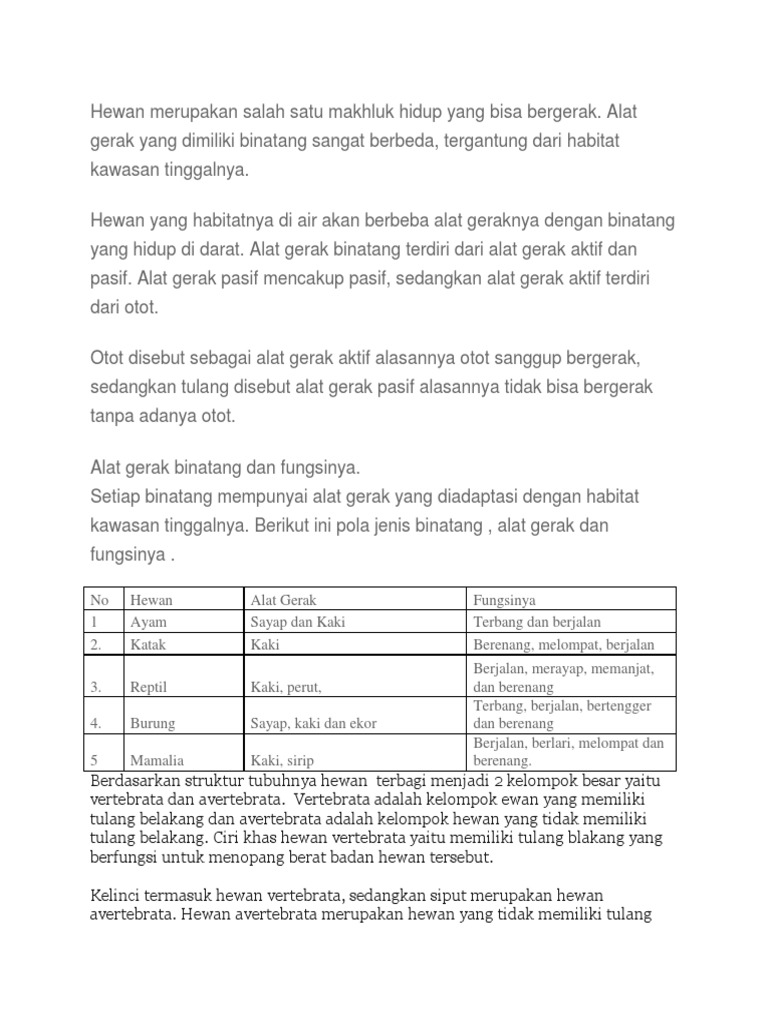 Alat Gerak Pada Vertebrata Dan Invertebrata