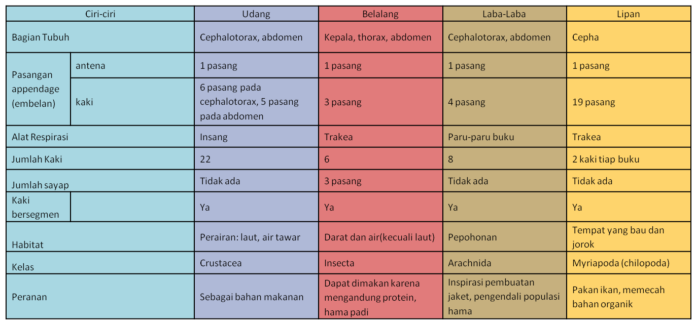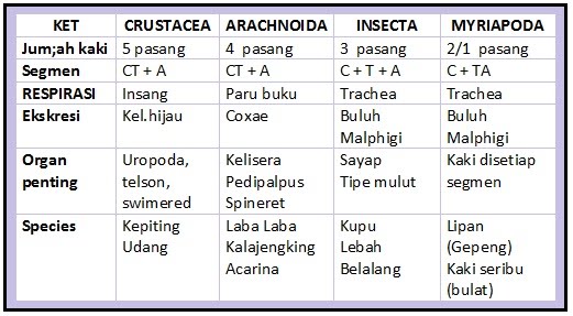 Buatlah tabel perbedaan antara Crustacea, Arachnoidea, Myriapoda dan Insecta mengenai tubuh, kaki, - Brainly.co.id