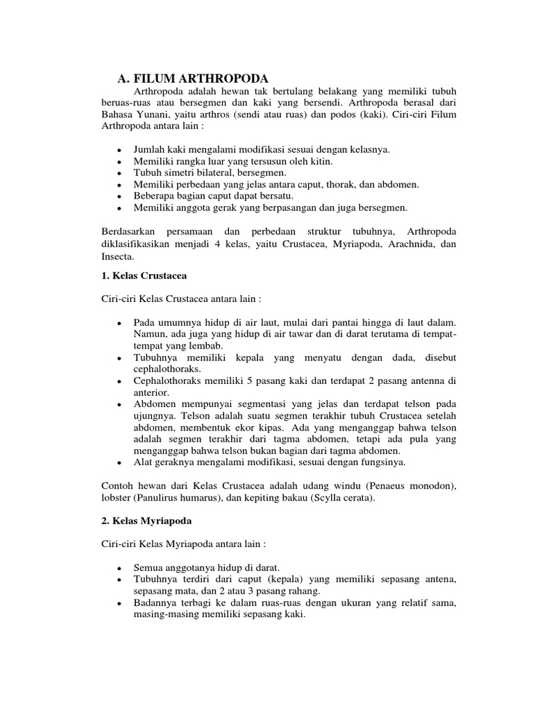 DOC) Phylum Artrophoda | Nurul Ikhsanti - Academia.edu