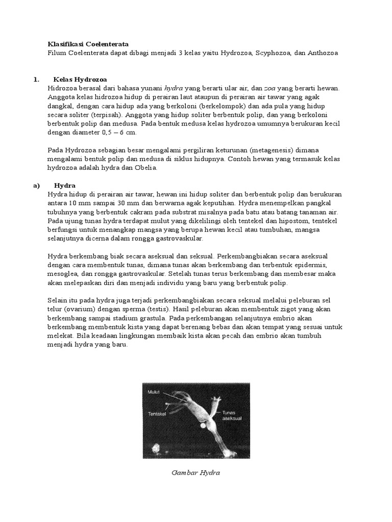 Fisiologi Hewan Coelenterata PSYCHOLOGYMANIA